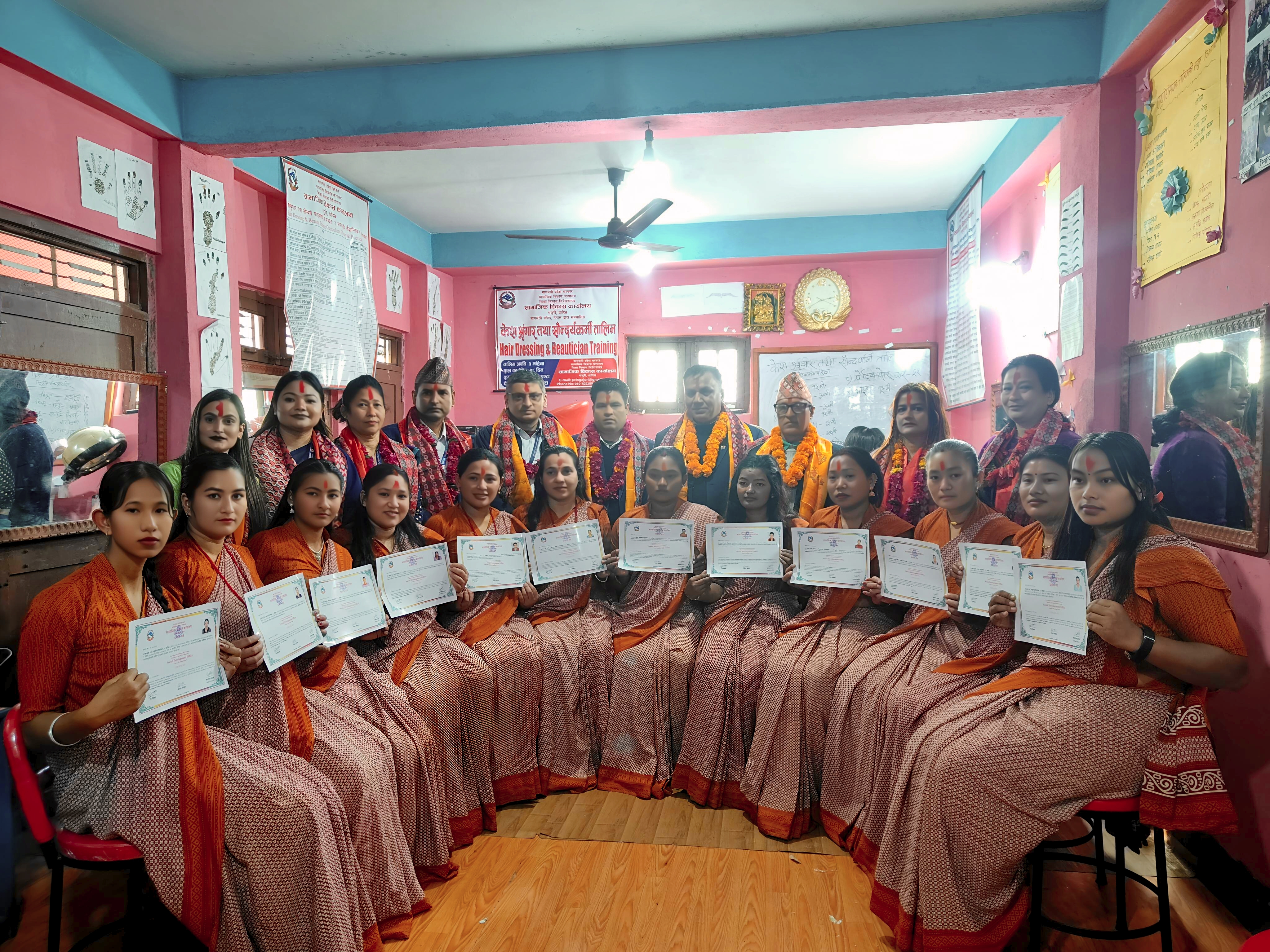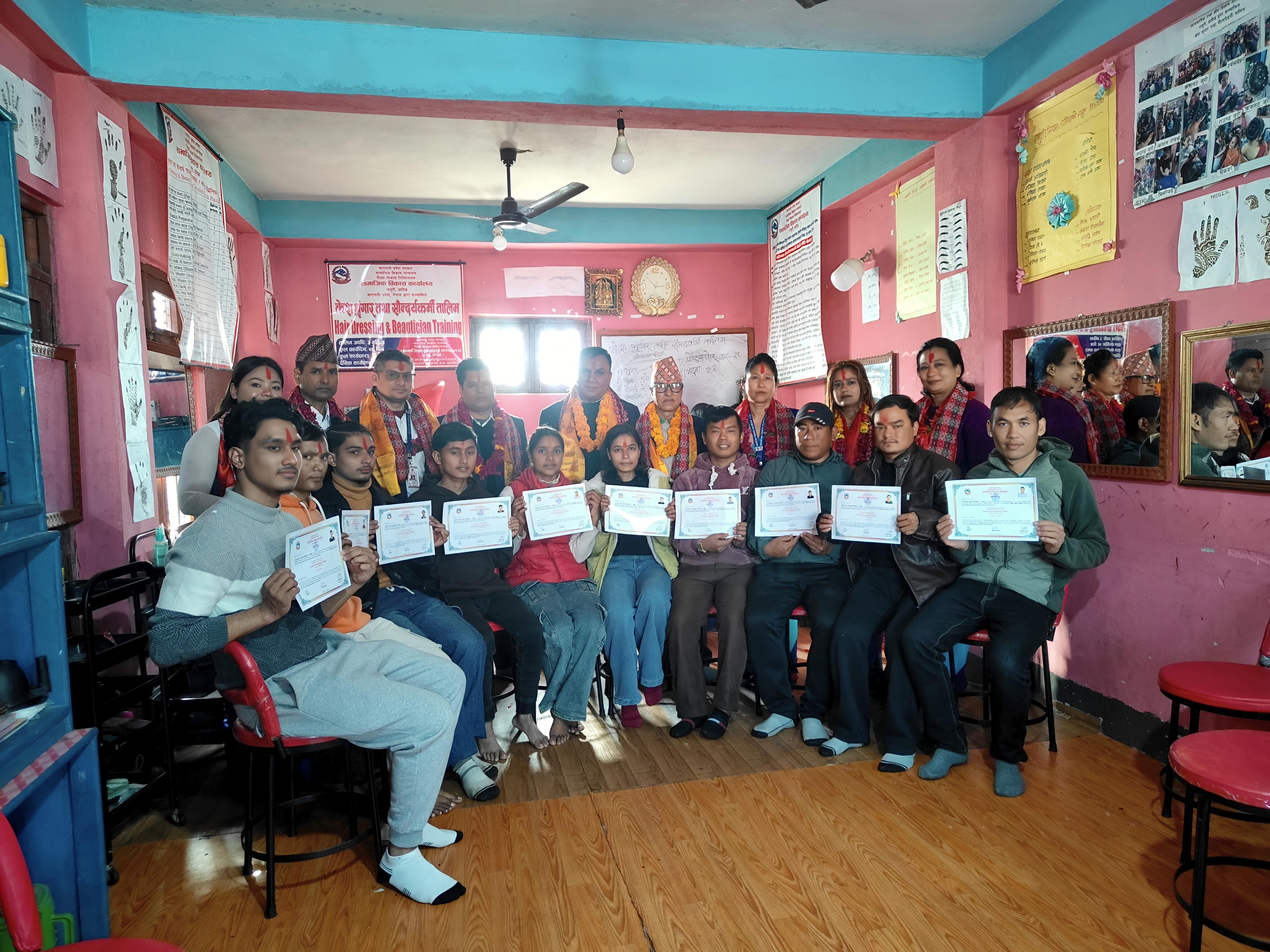 ३ महिने नियमित सीपमुलक केश श्रृगांर तथा सौन्दर्य तालिमको प्रमाण पत्र वितरण